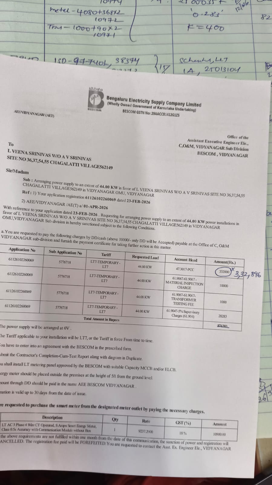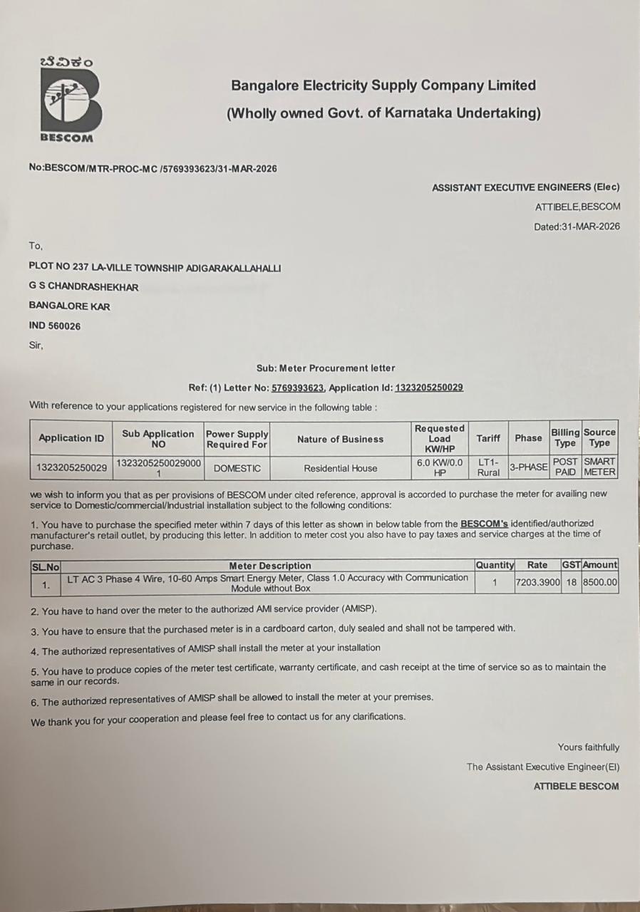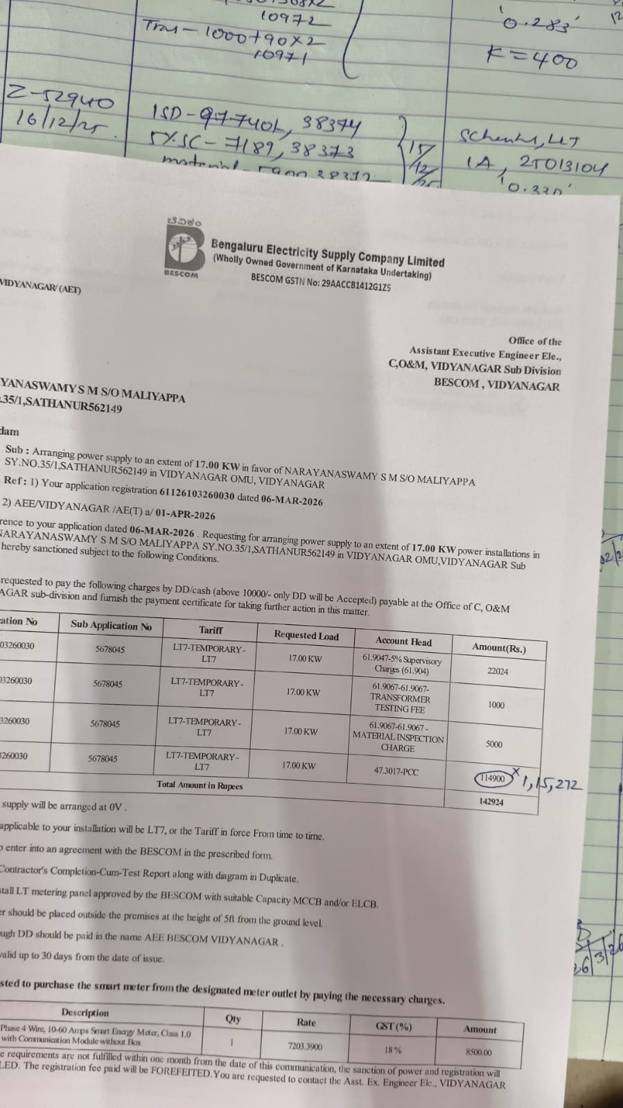 4/1/2026 5:47 PM 807093 39654RGHCLBidarahalliSyNo.193SiteExternalElectricalWorks-SystemGeneratedOnlineIntimationPowerSanctionApprovals.pdf