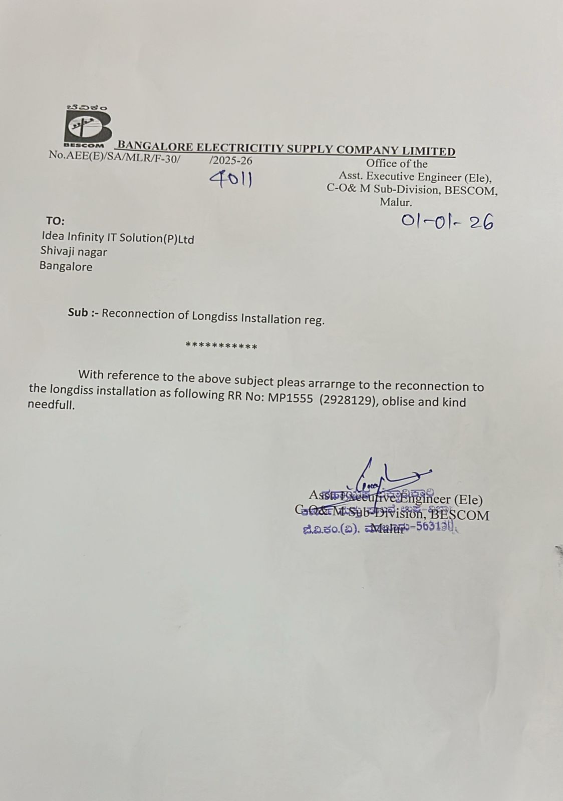 1/1/2026 12:13 PM 697185 29888NARASIMHAPPAdIVISIONINTIMATION.pdf