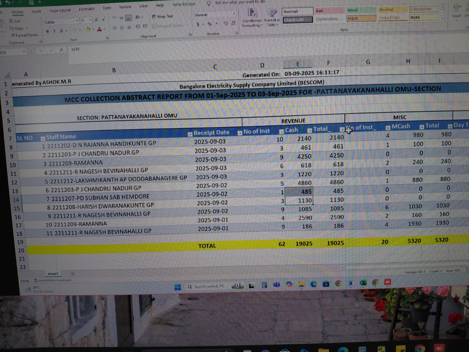 9/3/2025 11:07 AM 17507 18774HULIYARAOMU1_103_DCB_SUBDIVISIONWISE_REPORT_HULIYARAOMU1_010925_030925.xls
