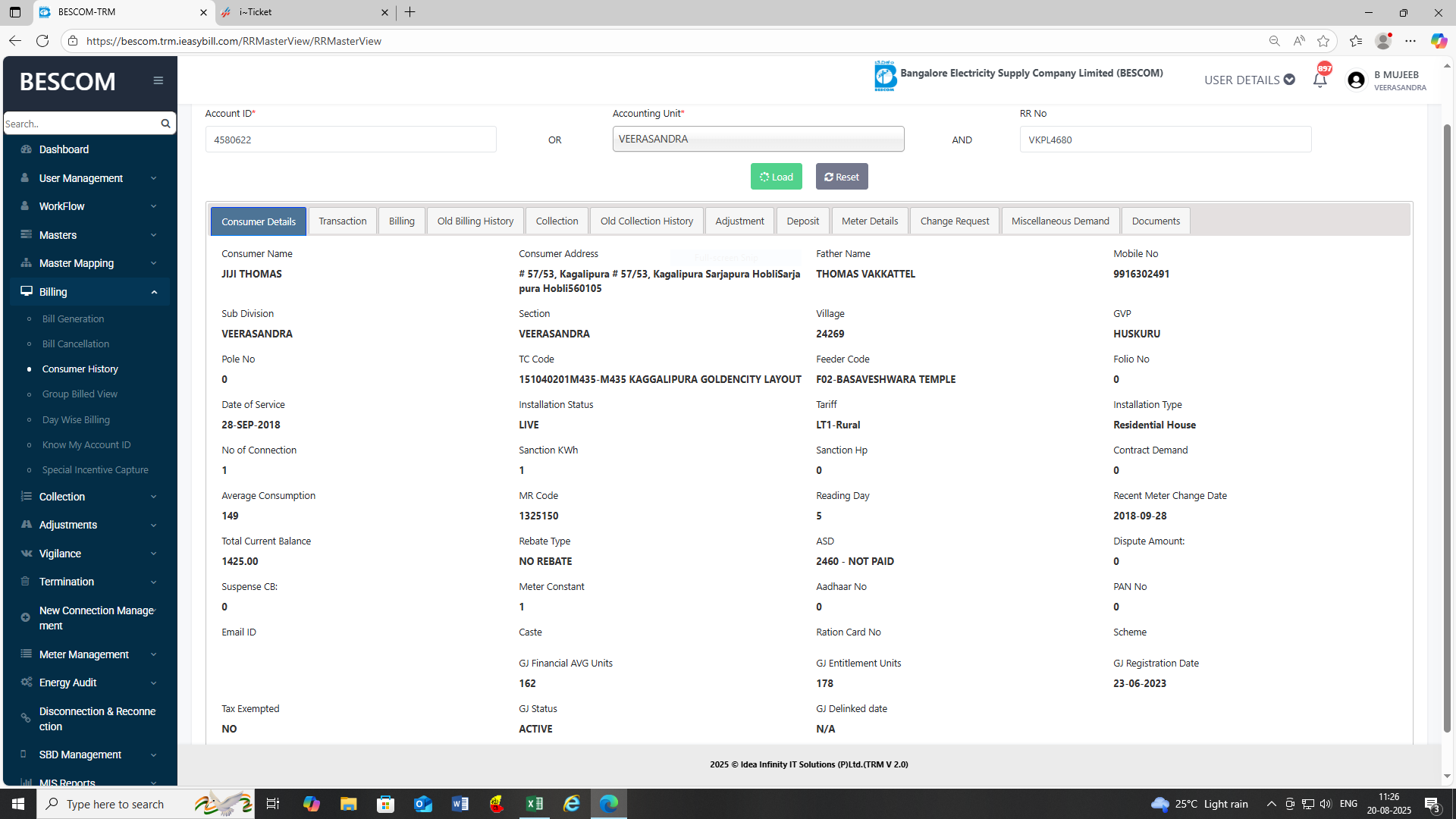 8/20/2025 4:22 PM 11357 17521BAGEPALLI_EnergyAudit_FeederWise_Report_010825_200825.xls