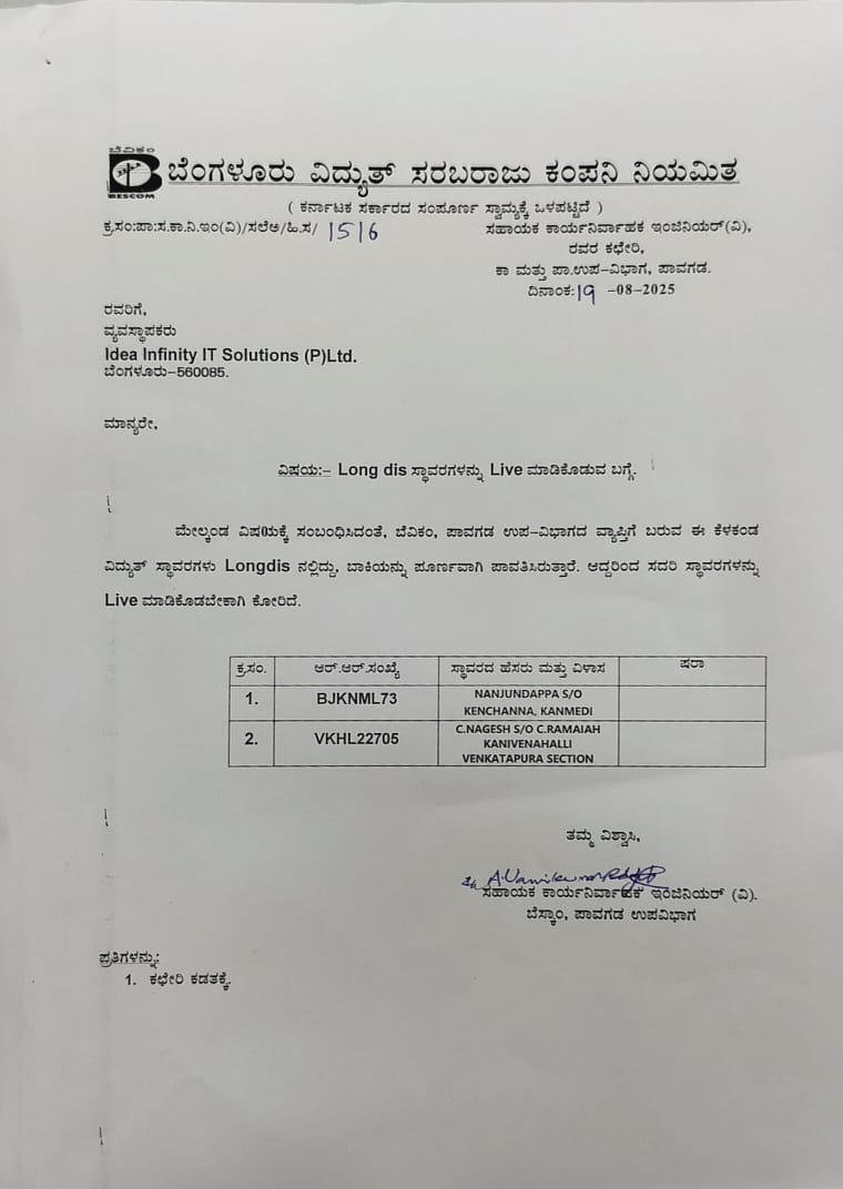 8/20/2025 4:27 PM 19554 17523NewConnectionDocketTariffUrbantoRuralChangeJagalurSub-Divn.xlsx