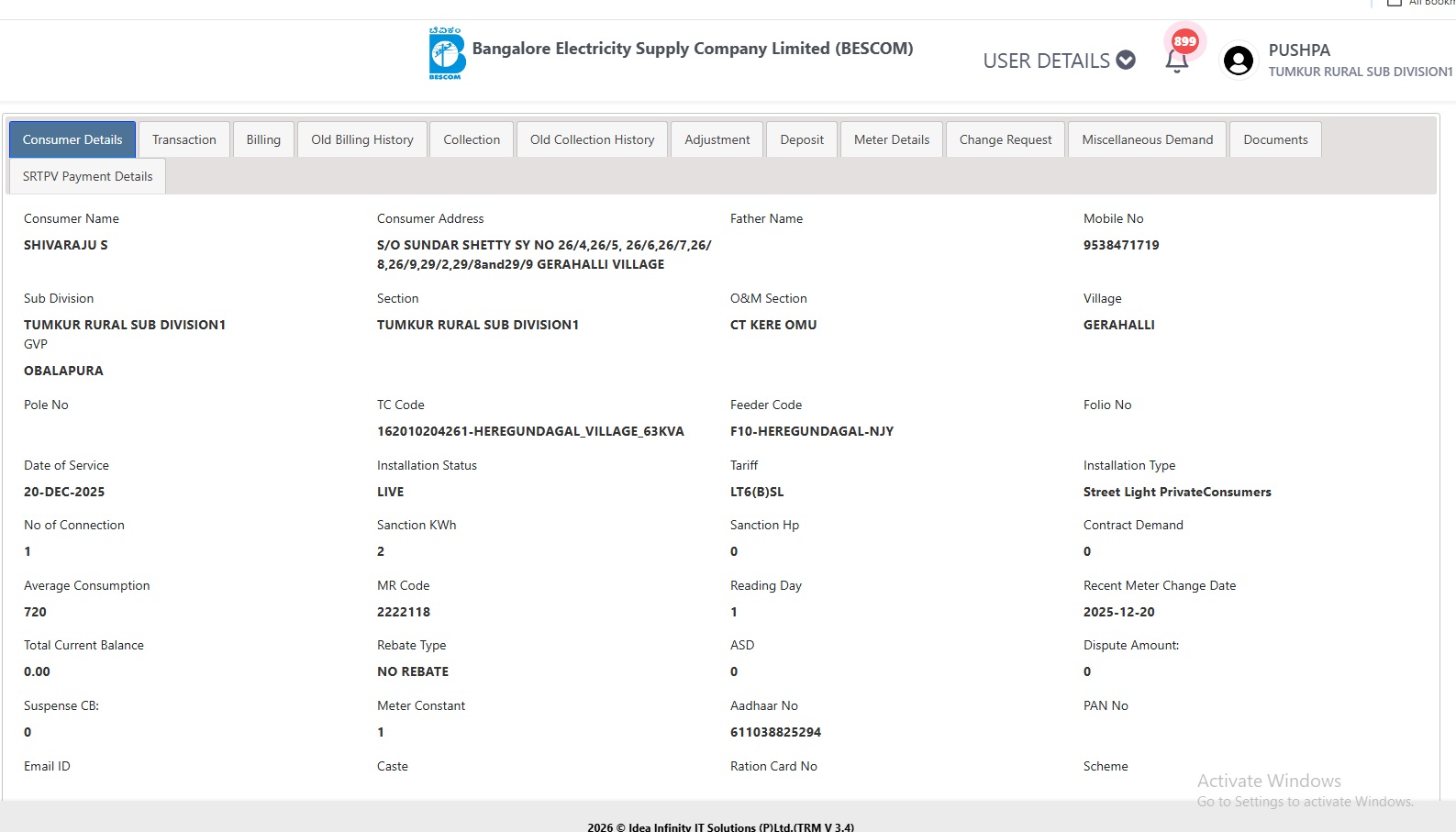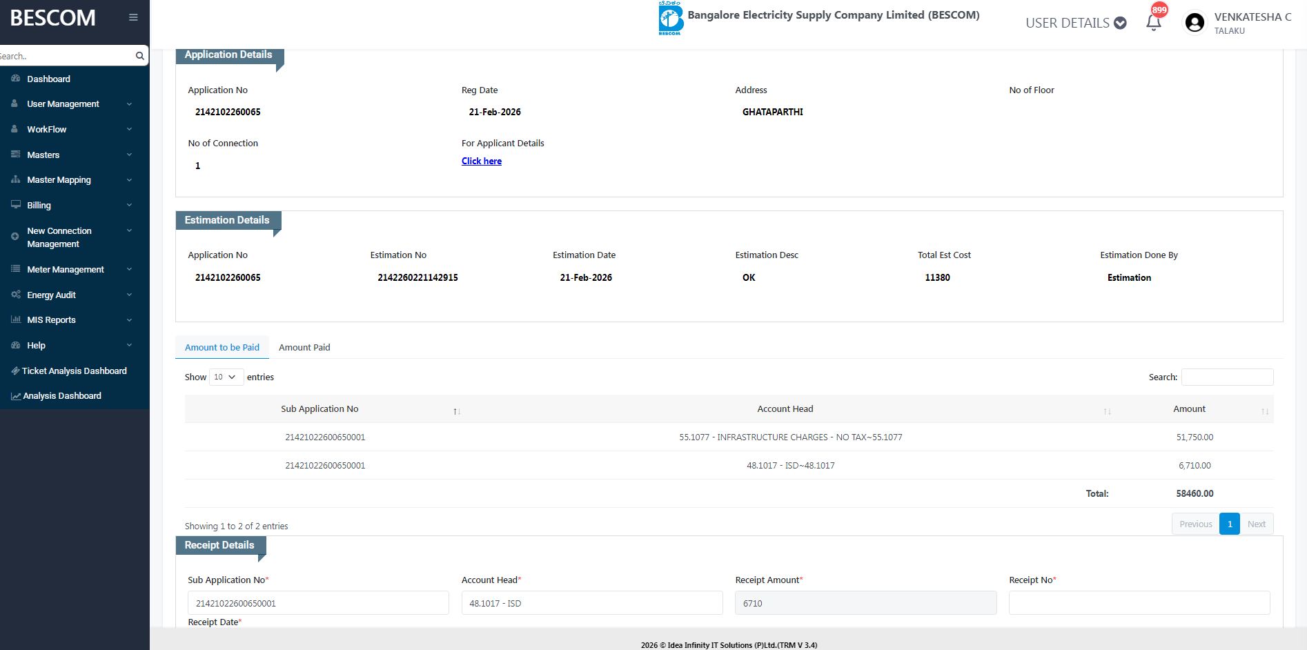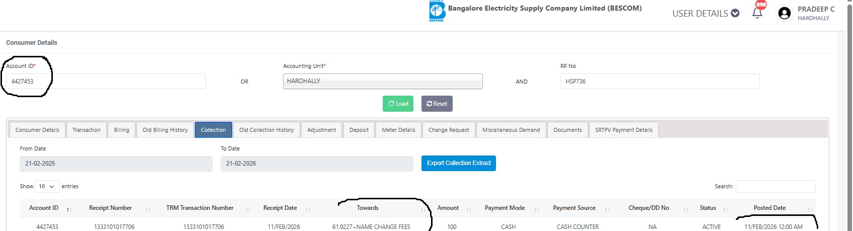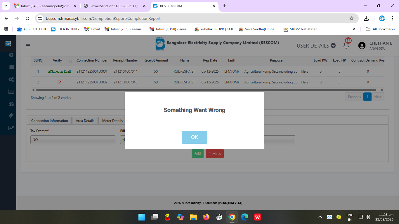 2/21/2026 5:39 PM 106840 35655sakalarejectScreenshot_21-2-2026_173444_bescom.trm.ieasybill.com.jpeg