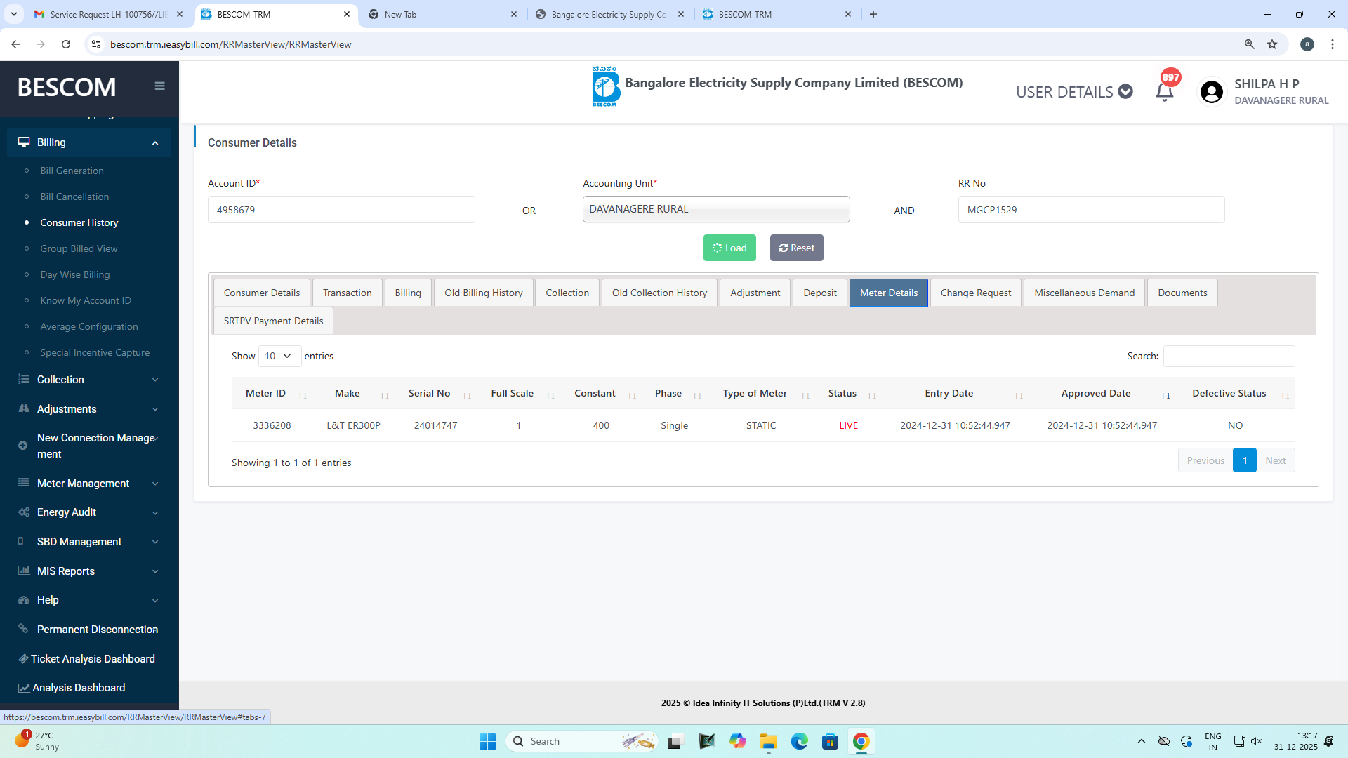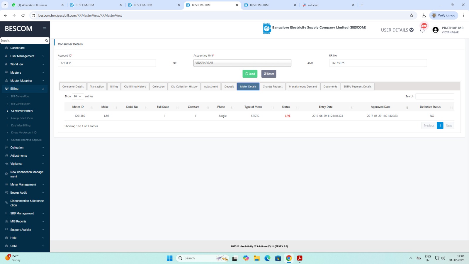 12/31/2025 12:14 PM 13011 29776VEERASANDRA_BillingEfficiency_Report_011225_311225.xls